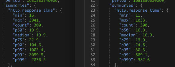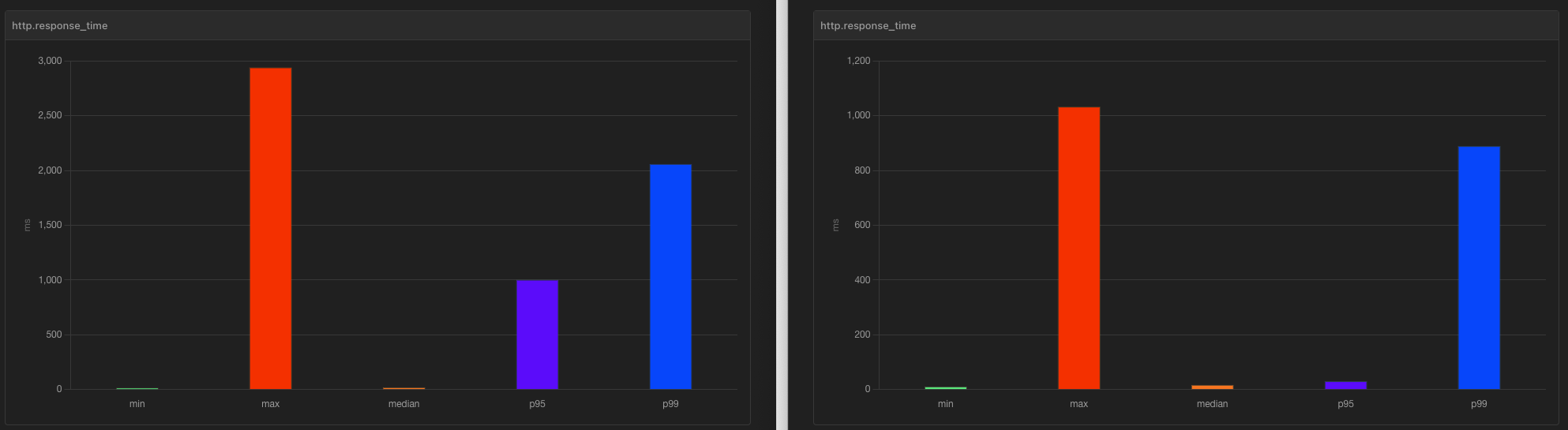 - Querydsl로 재 작성하여 서버에 배포하여 확인 시 응답 시간은 평균적으로 유사하지만, p95 부터 3배 이상 차이가 나는 것을 확인할 수 있었다.