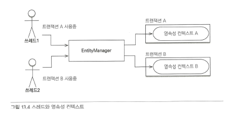 - 스프링 컨테이너는 트랜잭션 범위의 영속성 컨텍스트 전략을 기본으로 사용하기 때문에 해당 로직에서는 트랜잭션이 달라 다른 영속성 컨텍스트를 가진다.